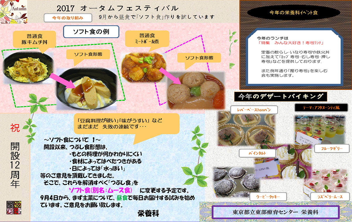栄養科のサービスや新たな取り組みは、この様なパンフレットで入所の皆様にお知らせしています。
