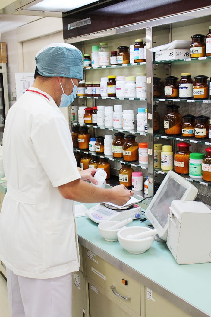 主に長期入所者の方の調剤を行っていますが、医療入院や一部外来調剤も行っています。